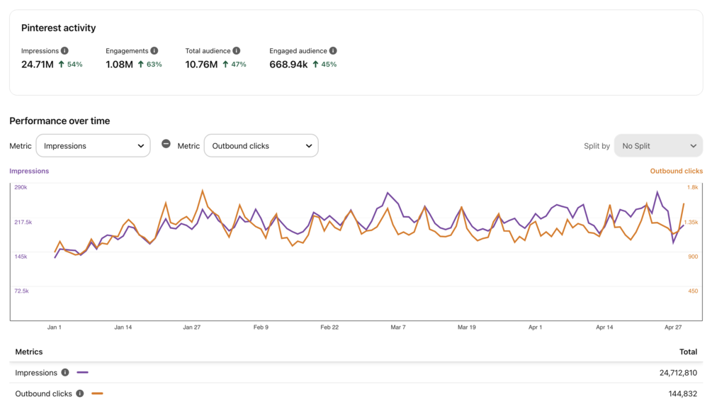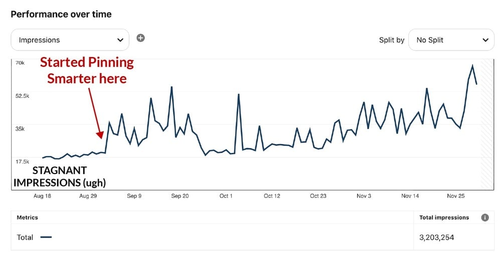 - [Blogger Client #2]: 30 fresh pins/month proved enough to skyrocket impressions.